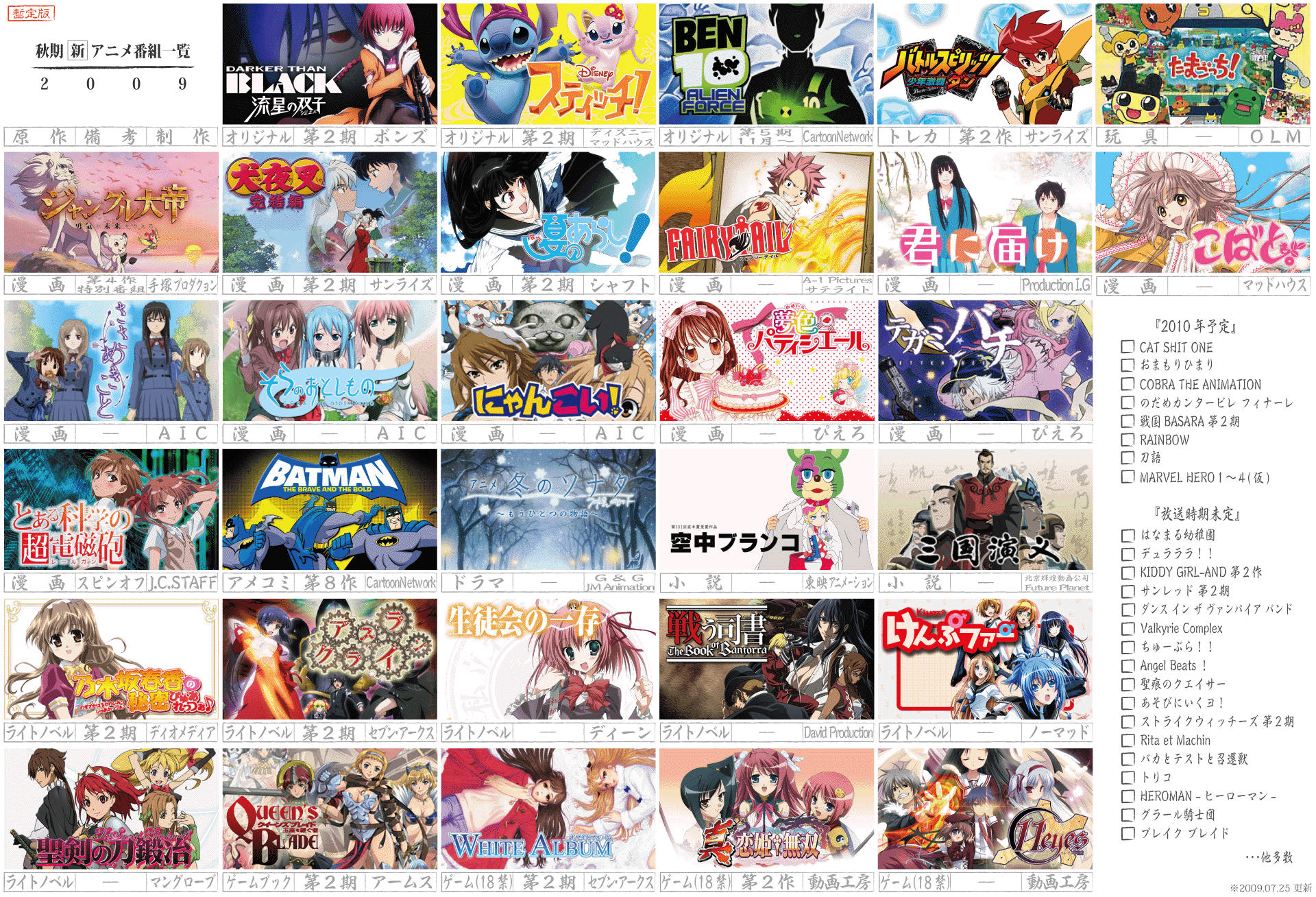 2009년 가을 신작 TV애니메이션, OVA 일람