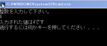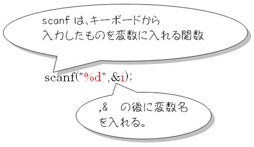 ④ scanf関数を使ってキーボードから入力した数値を変数の中に入れるプログラムを作ります。