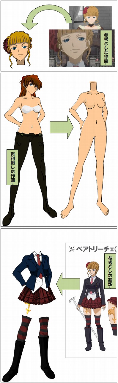 以前に作成した身体を修正して、顔をつなぎ合わせています。