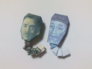한국의 지폐에 그려지고 있는 사람은, 모두, 모자를 쓰고 있지.