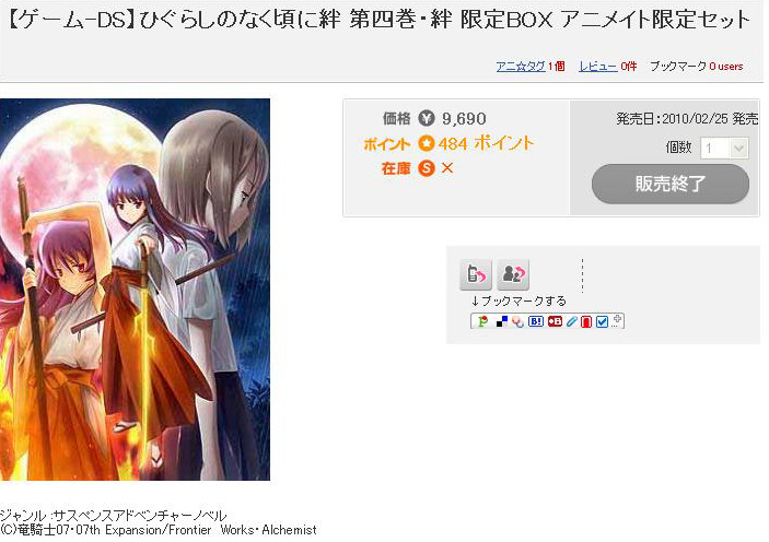 닌텐도 DS판 ひぐらしのなく頃に絆 第四巻 ANImate 특전을 사려고 했는데.......