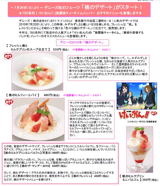 KJCLUB - 「けいおん!!」と『デニーズ』がタイアップ