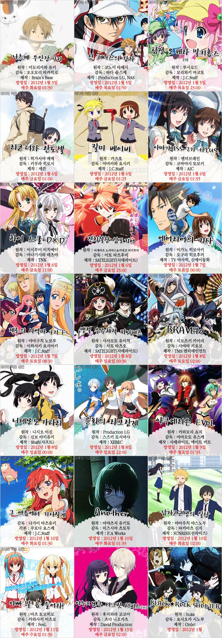 - 2011년 11월 08일:2012년 01월 신작 애니 목록 최초 작성