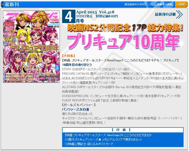 アニメージュ…最近はプリキュア特集が多いですね^^
