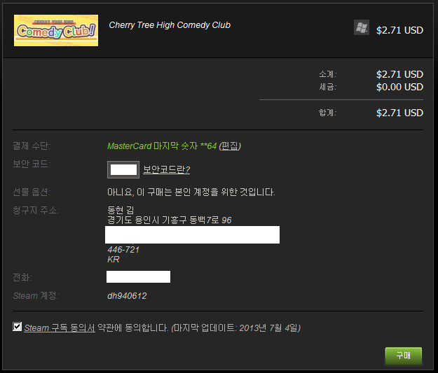 최근 Steam에서 게임을 구매해 주셔서 감사합니다.