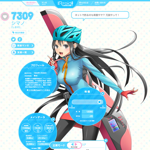 미소녀 캐릭터와 주식 정보가 연동한다, 어쩐지 업의 깊은 것 같은 Web 사이트가 탄생했습니다.그 이름도「IRroid(IR 로이드) 」.기업 마다 설치된 미소녀 캐릭터가, 주식 정보등을 모에네~느낌으로 발신하는 사이트입니다.