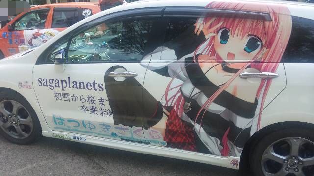 それぞれ「痛車」と確認できたら、40%OFF指定割引券が送付される。(ただし6m未満までの乗用車に限る。)
