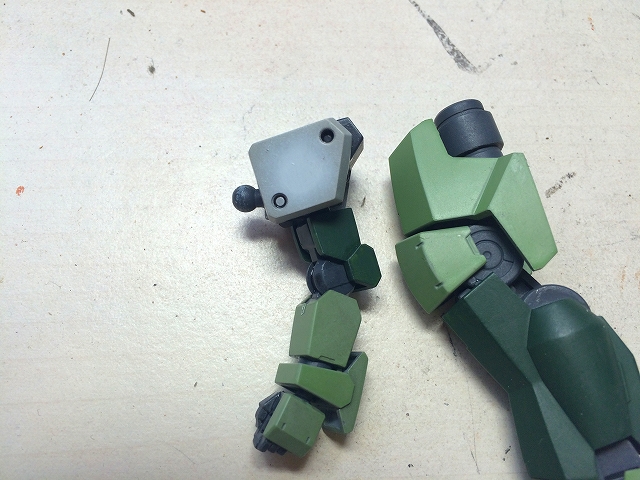 左の腕が作業後、右の足が作業前。