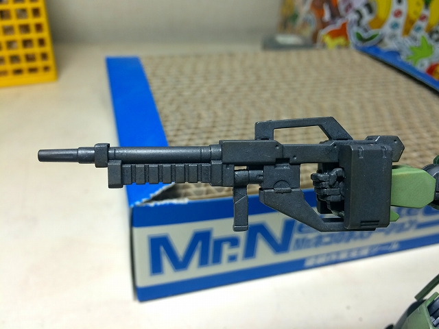その後エッジ部に軽く錆色をのせて、銃口部はススをのせます。