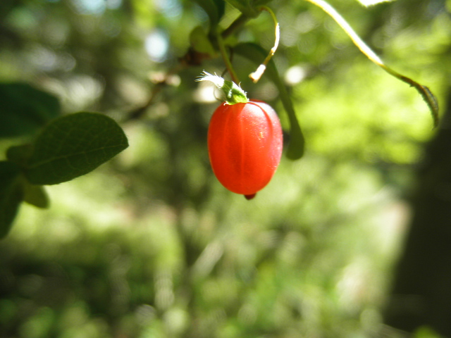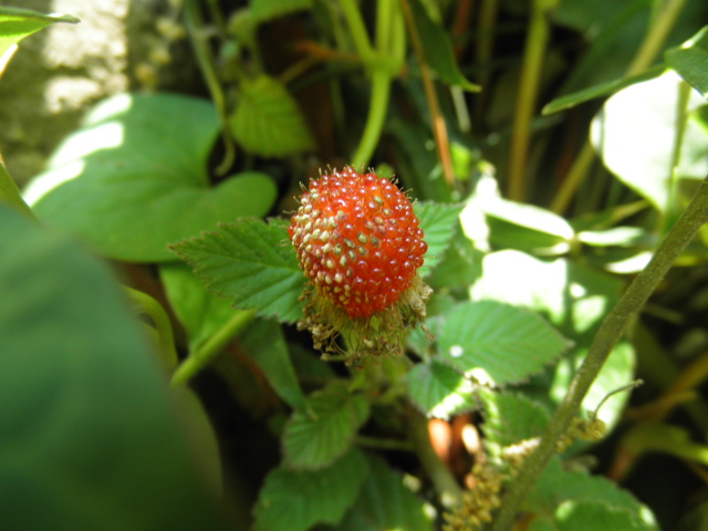 日当たりの良い所で一個だけ完熟してたクサイチゴ。