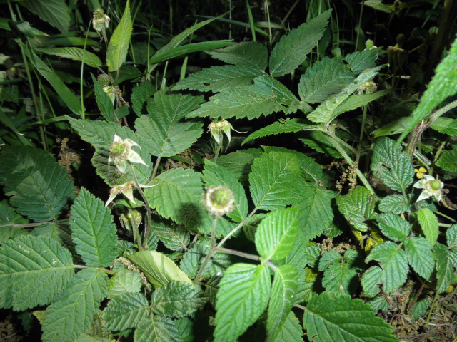 クサイチゴの実、日当たりが悪いせいか、まだ熟してない
