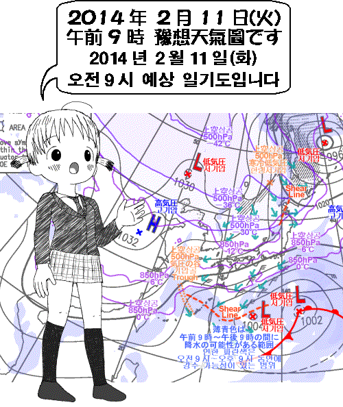 明日は日本も韓国も比較的「平和な」天気。韓国東海岸の大雪も止みます。ただし、気温は低い状態が続き、都市の道路は次第にスケート場的な状態へ変化していきます。