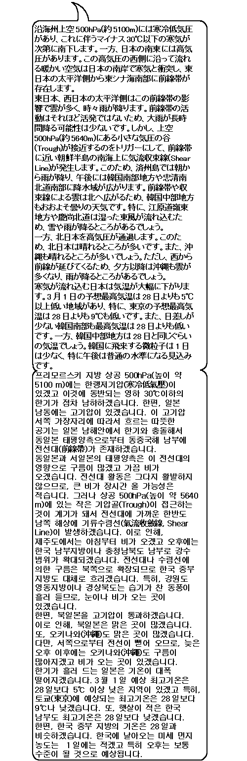 日本は気温が下がる。北日本や沖縄以外は日本も韓国も天気が良くないです。