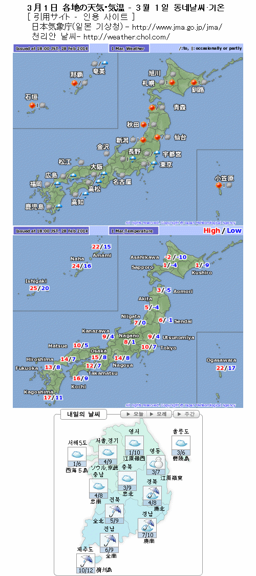일본은 기온이 떨어지겠어요. 북일본이나 오키나와의 밖은 일본도 한국도 날씨가 좋지 않겠어요.