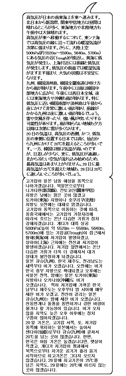 큐슈나 한국 남부는 큰 비의 우려가 있습니다.