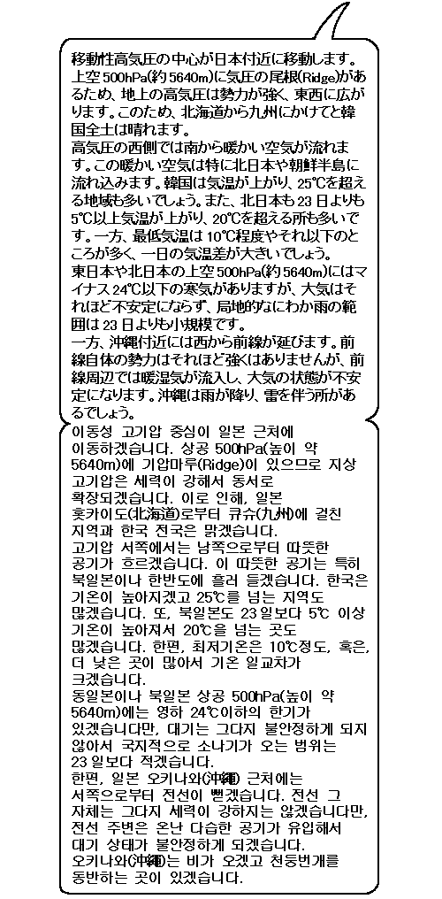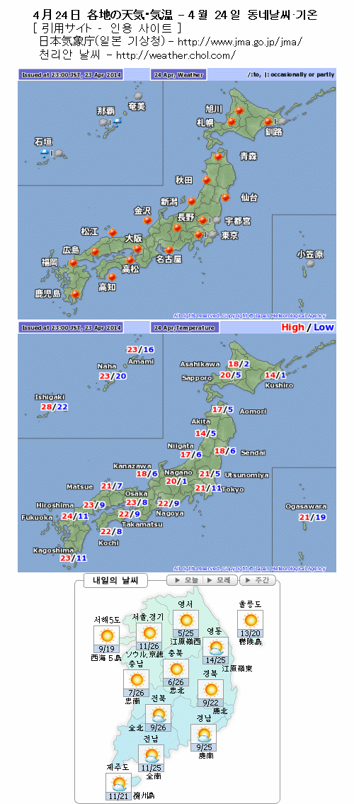 기상정보입니다. 내일도 날씨가 좋겠습니다. 한국은 덥게 느껴질지도.