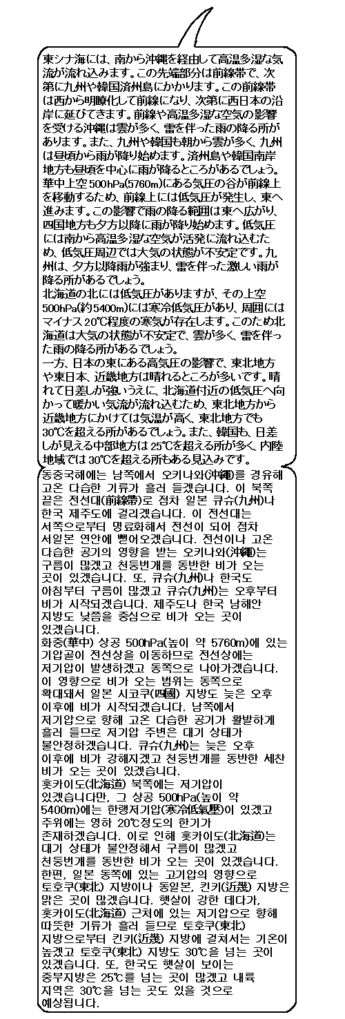 일본 토호쿠(東北) 지방으로부터 킨키(近幾) 지방에 걸친 지역과 한국 중부지방, 내륙지역은 30℃에 도달하는 곳이 있을 것 같아요. 열사병에 조심해야 하는 계절이 왔습니다.