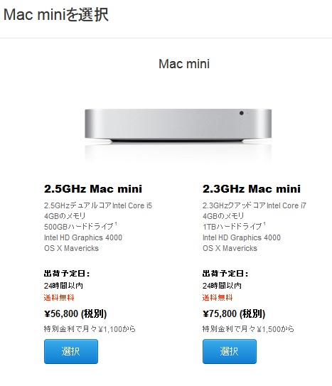 Mac miniだとメモリの増量とか HDDの交換が自分でできそうな感じがあって