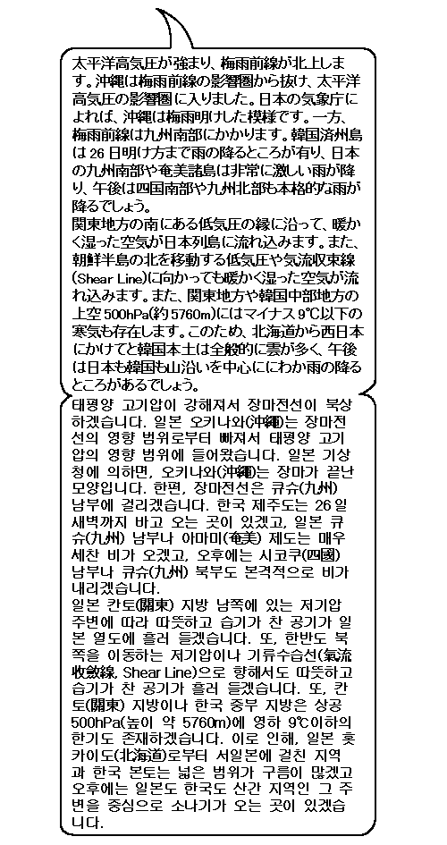 오키나와에서 장마가 끝났다고 하는 건 그 밖 지역이 본격적인 큰 비 시즌에 돌입이란 뜻이에요.