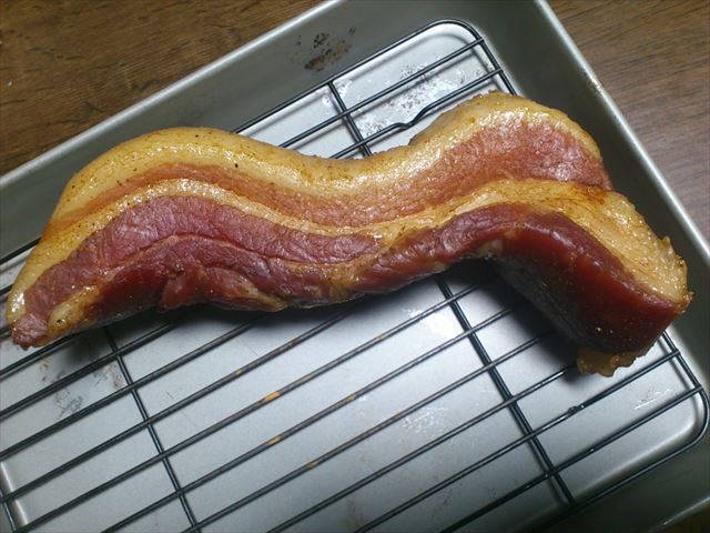 그 중에 들어갈 수 있는 재료의 베이컨을 만들기 위해 지난 주돼지 삼겹살육을 소금절이로 하고 있었습니다