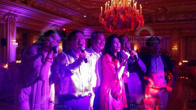 오빠 탁신의 생일 잔치를 하러 허가를 받고 출국