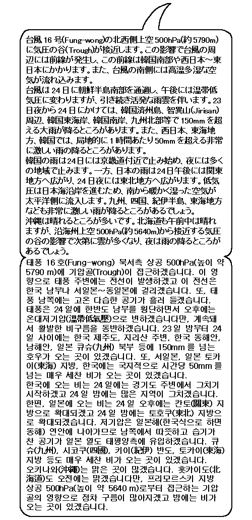 태풍∼온대저기압(溫帶低氣壓), 전선 등에 의한 호우에 조심하시기 바랍니다.