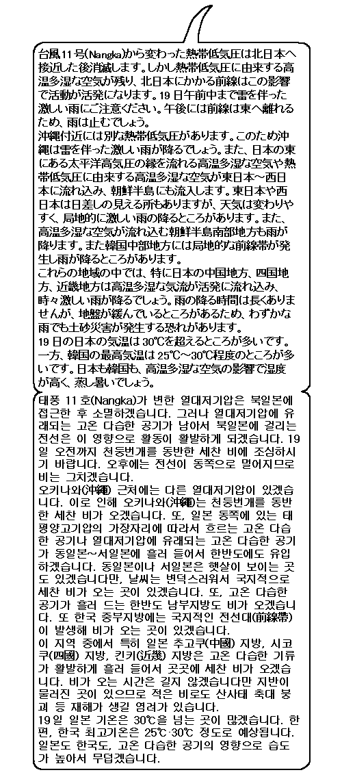 21874 気象情報の時間です。 clavier001 2015-07-13 1784 0