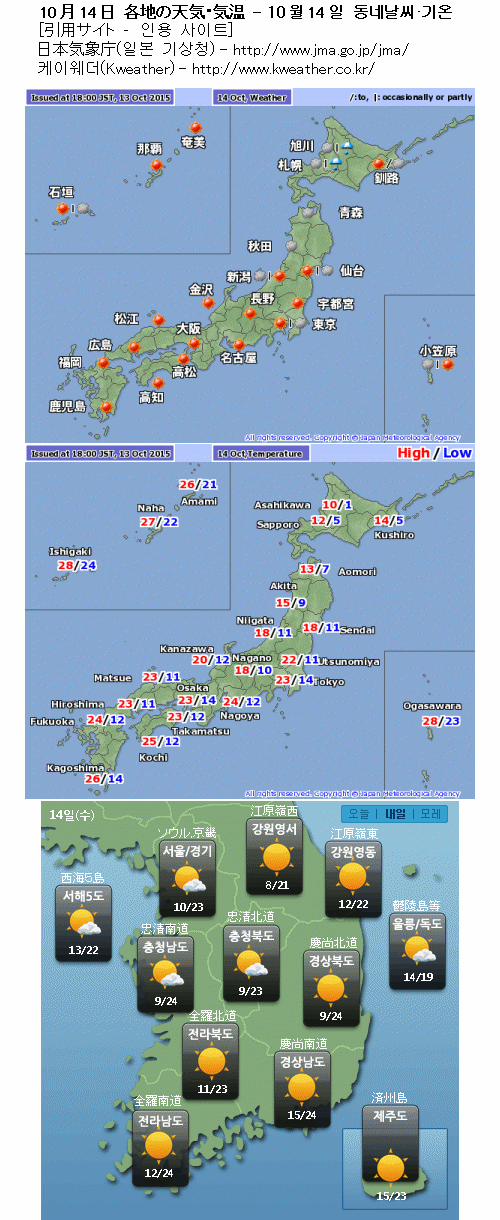 일본 홋카이도(北海道)는 한기로 덮여서 오늘밤 이후, 평지도 첫눈이 올 가능성이 있습니다. 그 밖 지역은 대체로 날씨가 좋을 것 같습니다.