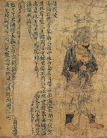 나라의 원제(元帝)인 소역(蕭繹, 505∼554)이 제위(帝位)에 오르기 전인 형주자사(荊州刺史) 재임시(526∼539)에 편찬한 도서(圖書) 〈직공도>에 등장한 일본인 사신의 모습www