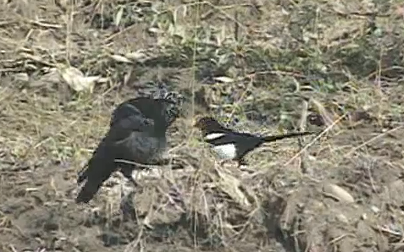화질이 정말 뭐같지만 무리지어 개를 공격하는 까치