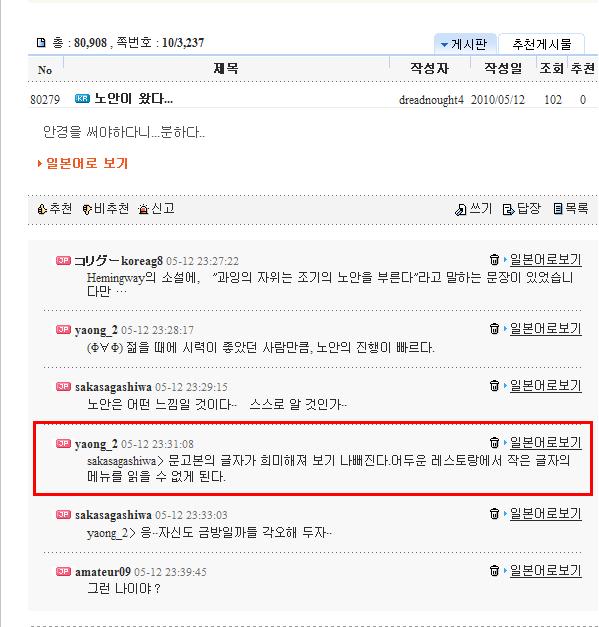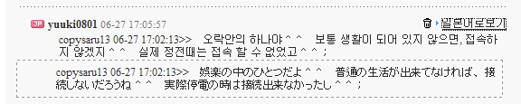 west2009 12-15 14:20:04>그러니까, KJ에서의 너의 투고와 리플은 중학생 아들에게 부끄럽지 않아?