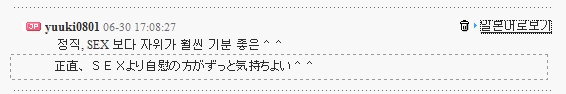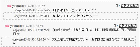 west2009 12-15 14:13:44>KJ에서의 너의 투고와 리플은 중학생 아들에게 부끄럽지 않아?