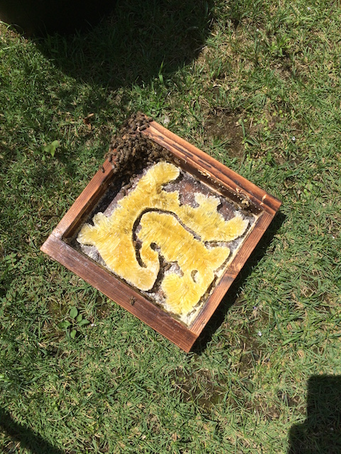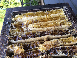 上部の蓋を開けたところ ここにも蜂蜜がついてる