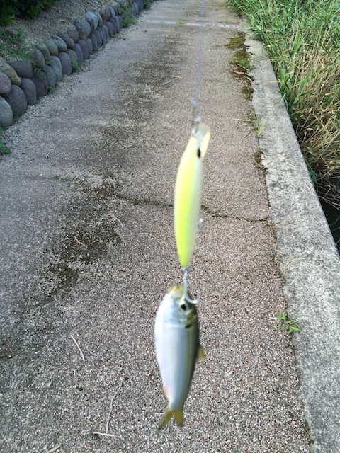 釣りの方は川で 今日は久々に50cmくらいと30cmくらいのスズキを2回掛けたが