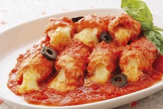 돼지고기에 소금 후추를 해 줄기 잘라, 치즈와 바질을 감습니다.