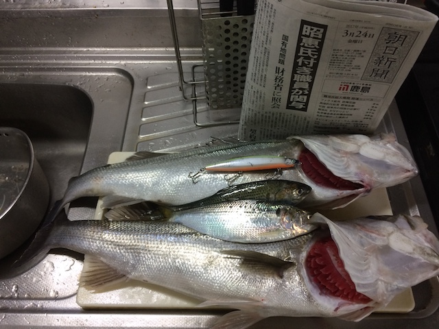 今朝はスズキ2匹とまたコノシロが2匹釣れました