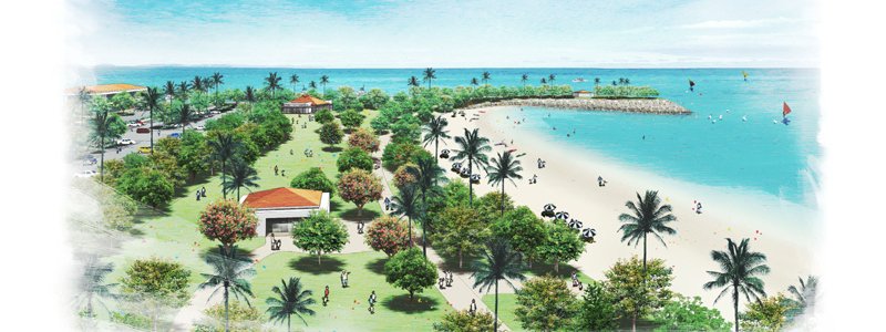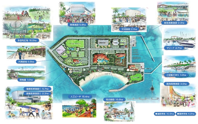 コースタルリゾート地区、遊戯施設?人工ビーチ(約600m)、軍港移設、遊技施設など  ※200ヘクタール前後