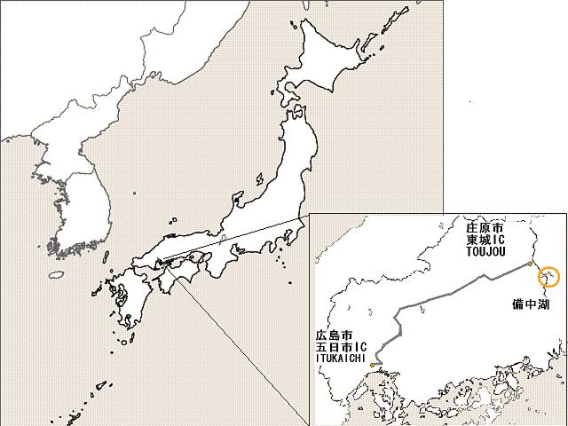 고속도로를 히로시마시로부터 히로시마와 오카야마의 현 경계의 토우죠우(TOUJOU)까지 달립니다(116.6 km, 통상 3050엔이 1000엔의 통행료입니다)