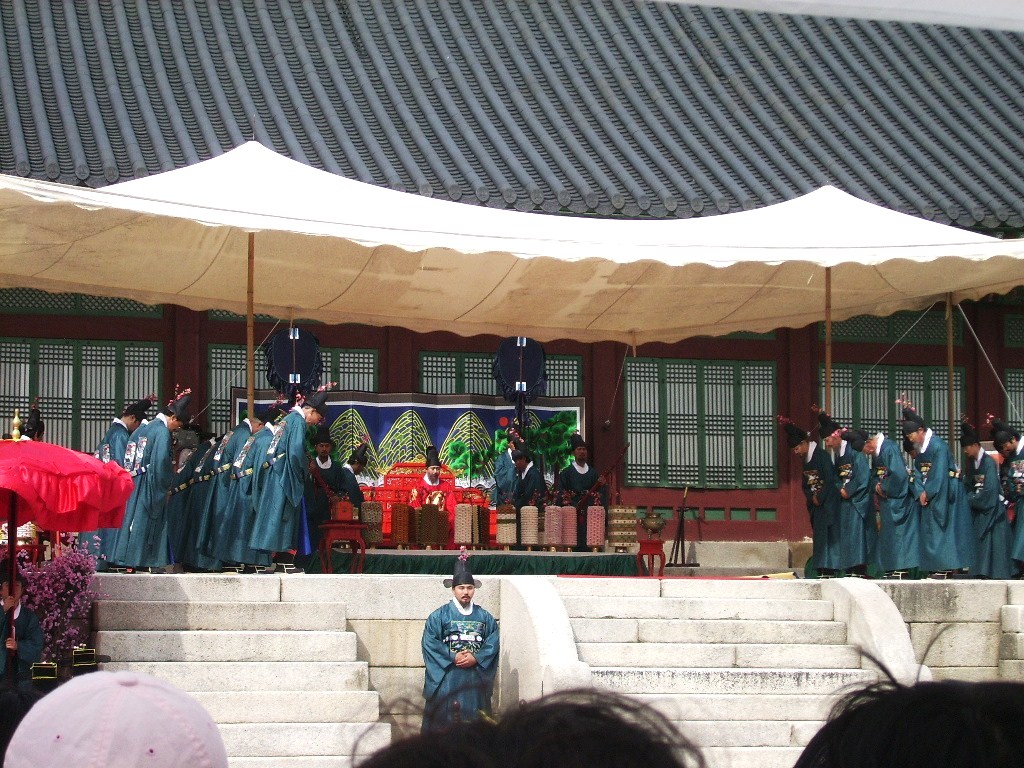 색색의 옷을 입은 신하들이 차례로 등장하고 곧이어 임금이 등장하게 되었다.