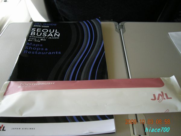 「予約無し、チケット無し。でも韓国行きのチケットが有ると思う」と言うと、職員が慌てだした。どうやらコンピュータが日本航空のシステムで稼働していて、マイレージから探せないらしい。他の職員とも相談し、何処かへ電話を掛け、やっとチケットが見つかった。この間15分、日本航空の職員に申し訳ないと思うのと、eチケットは良くできていると感心する。