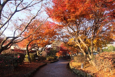 大吉山麓。真緑。(ミュージアムの前は真赤でした。)