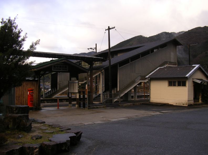 駅舎の様子です。古い駅舎は入り口を除いて取り壊されて、現在は小さな待合所があります。