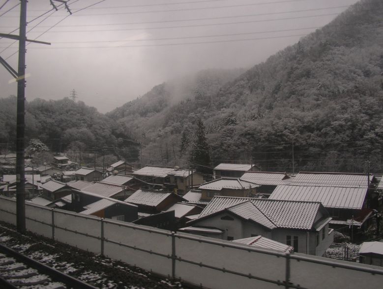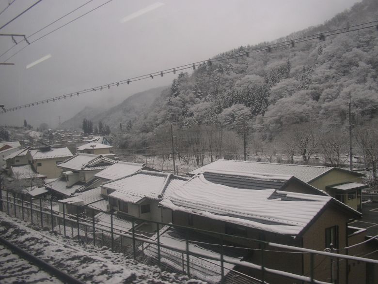 ぶどう畑を抜けてさらにトンネルをくぐると雪景色でした。
