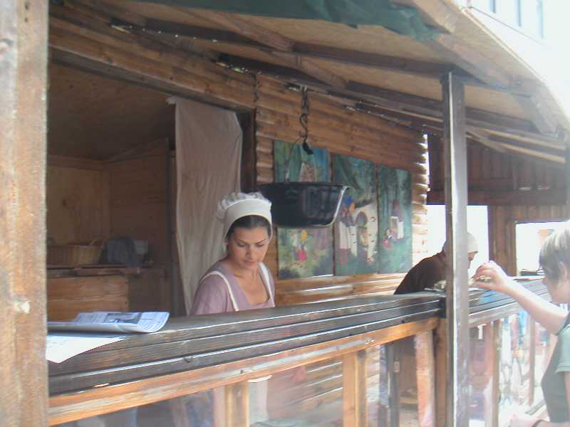 お祭りの期間中は、ソーセージ屋やパン屋が、店先で、中世の格好をして、品物を売ってます。