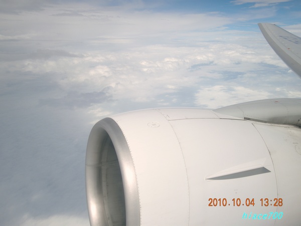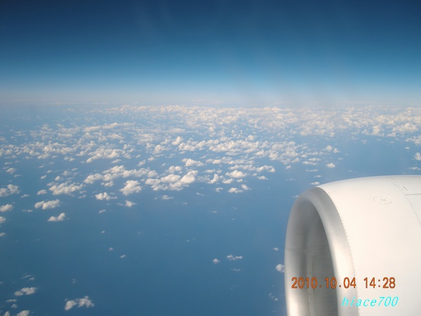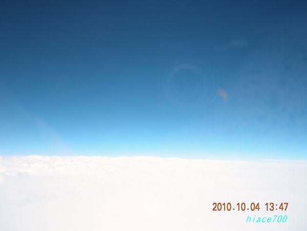 何と窓3個分もあって吃驚。ビジネスクラスと同じ前後の広さ。足を伸ばしても前に届かず、ラッキーな飛行機旅
