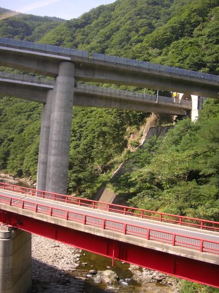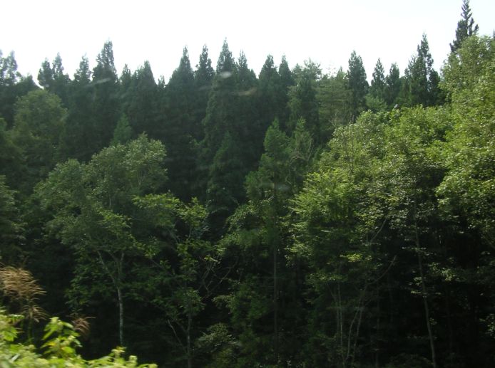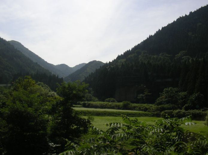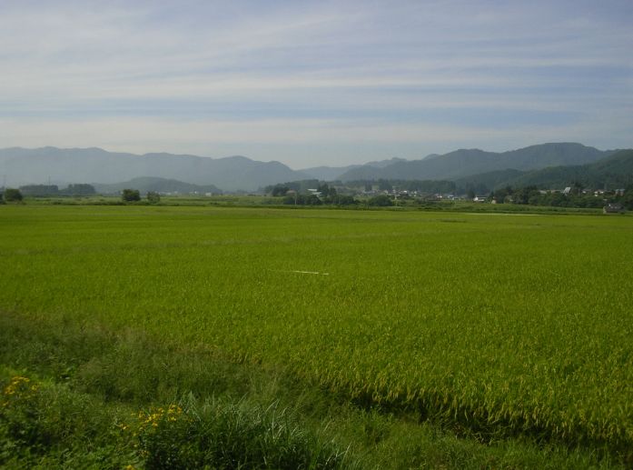 이와테현과의 현 경계 부근은 산지가 되고 있기 위해, 지금까지의 논풍경과는 다른 경치가 됩니다.