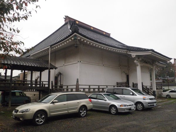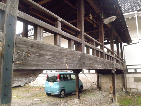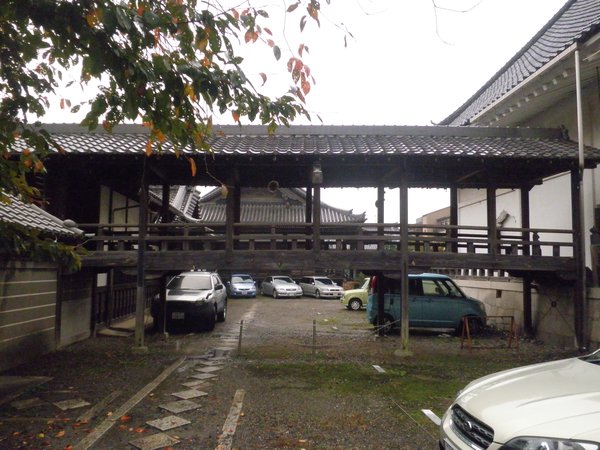上の写真は本堂の後ろ側です。後ろ側にも向拝を設置しています。