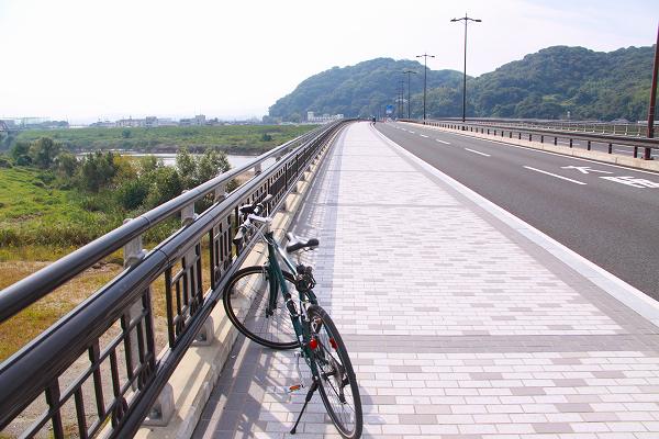 国道(府道13号)は、自転車に不向きなので、土手から川側へ落ちます。