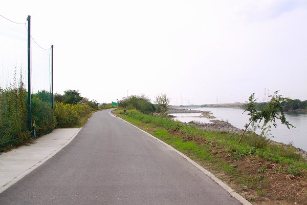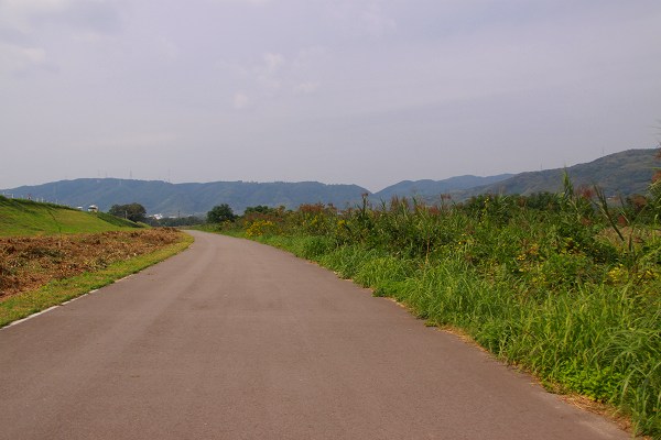 국도(부도 13호)는, 자전거에 적합하지 않아서, 제방에서 강 쪽에 떨어집니다.
