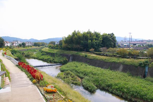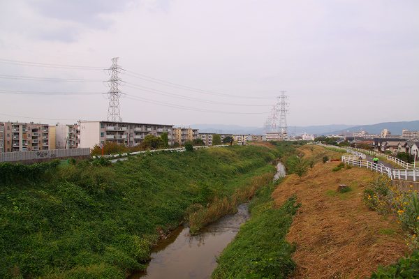 穂谷川。駅から枚方バイパス付近まで歩行者・自転車専用道があって通りやすかったです。なんとなく気になっていたので走れて良かった。